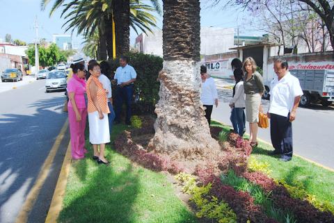 Prestadores de servicios turísticos establecidos en el municipio de Oaxaca de Juárez, constataron los trabajos de embellecimiento enmarcados en el programa Verde Antequera, que el gobierno de la ciudad realiza en camellones y áreas verdes como parte de las acciones de mejoramiento de la imagen urbana, en su primera etapa.