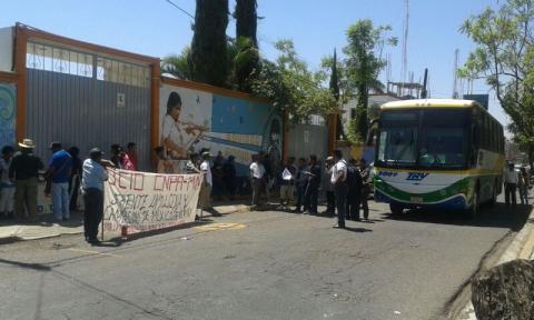 Oaxaca.- Integrantes de diversas organizaciones realizan una protesta al exterior de la Delegación de la CDI Oaxaca, en exigencia de autorización de proyectos de diversos programas con que cuenta dicha dependencia federal.