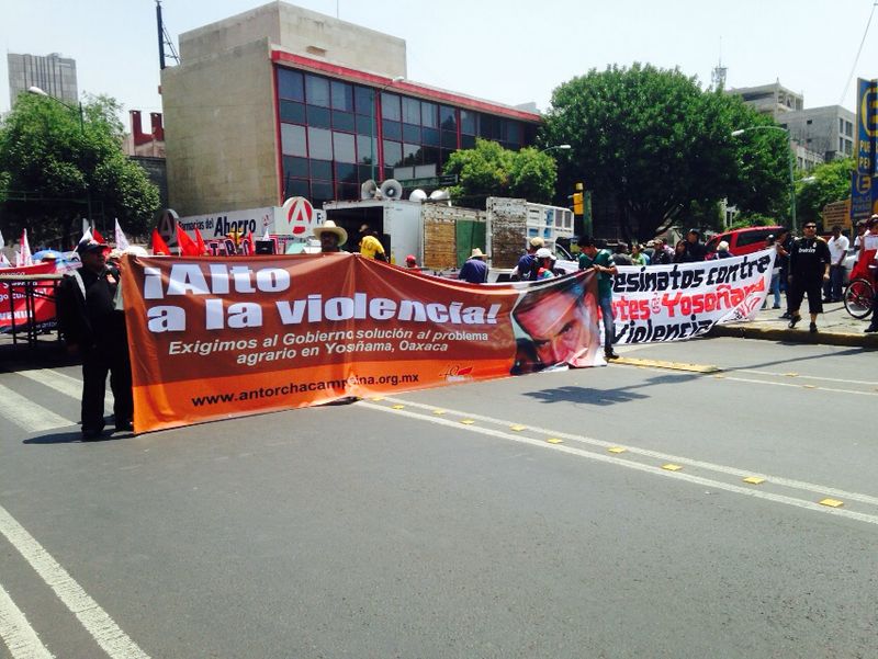 México, DF.- hoy miércoles 23 de abril más de 15 mil antorchistas marcharon del Monumento a la Madre a la Secretaría de Gobernación federal (Segob), donde solicitán la intervención de su titular, Miguel Ángel Osorio Chong, para que se detenga el clima de violencia, represión, amenazas contra el antorchismo oaxaqueño.