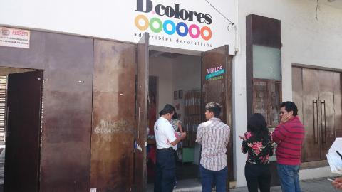 ~~Oaxaca.- Elementos de la Agencia Estatal de Investigaciones (AEI) realizan las primeras investigaciones en torno a una agresión armada contra la fachada del negocio de vinilos decorativos “D COLORES” ubicado en la séptima calle de Jazmines en la colonia Reforma.