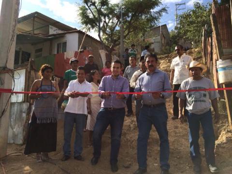Oaxaca.- Con la representación del Presidente Municipal de Oaxaca de Juárez, Javier Villacaña Jiménez, el Regidor de Agencias y Colonias del Honorable Ayuntamiento, Álvaro Reyes Sánchez inauguró la red de electrificación en la calle Amapolas de la colonia Ampliación Lomas Panorámicas, perteneciente a la Agencia Municipal Santa Rosa Panzacola, obra que beneficia a más de 150 vecinos de esta demarcación.