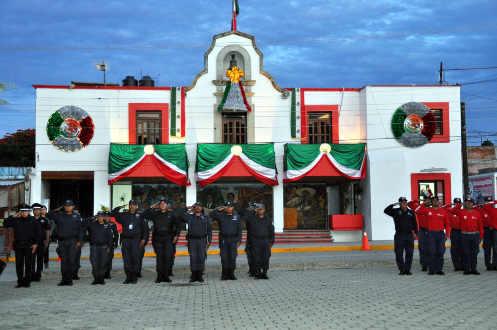 Xoxocotlán.- En el marco de la Conmemoración del CCIV Aniversario del inicio de la Guerra de Independencia, Autoridades Municipales de Santa Cruz Xoxocotlán, se reunieron en la explanada de la Presidencia Municipal encabezando la Ceremonia de Honores e Izamiento de la Bandera Nacional.