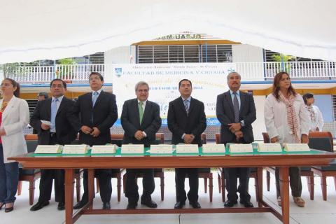 Oaxaca.- Ante la presencia del Rector de la Universidad Autónoma “Benito Juárez” de Oaxaca (UABJO), autoridades universitarias y representantes de las principales instituciones de salud pública presentes en el estado, se realizó la ceremonia de inauguración del ciclo escolar 2014 - 2015 de la Facultad de Medicina y Cirugía (FMCUABJO).