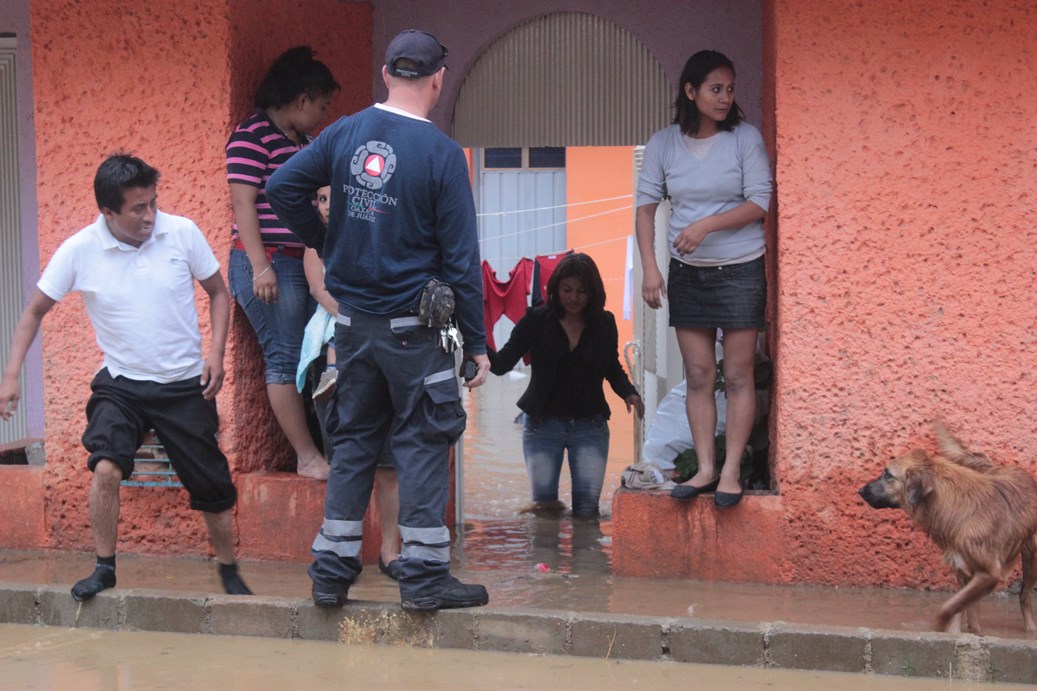 ~~Oaxaca.- Personal de Protección Civil Municipal brindo auxilio a familias de la colonia Jacarandas en San Martín Mexicapam, que sufrieron inundaciones como resultado de las fuertes precipitaciones registradas la tarde de este jueves en la capital oaxaqueña.