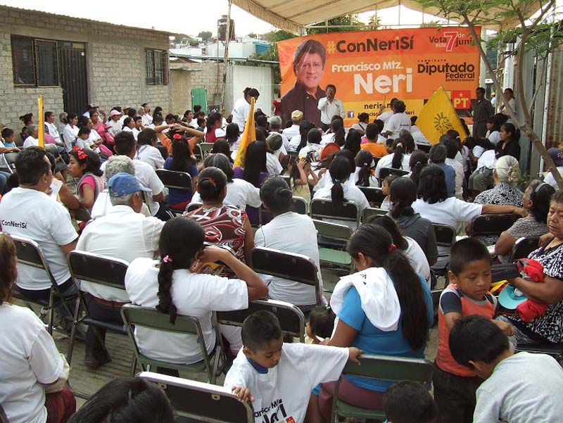 Vengo a informarles, les ha dicho Francisco Martínez Neri, que estoy en la contienda política-electoral del VIII distrito para lograr la diputación federal por la coalición PRD-PT en el Congreso Federal. Los vengo a invitar para que participen, que conozcan mis propuestas, que las comparen con los otros candidatos, pero fundamentalmente que acudan a votar el próximo 7 de junio.
