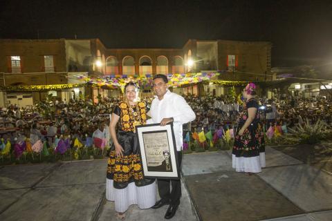Por acuerdo de cabildo y en el marco de la celebración la Grandiosa Vela Sandunga, el presidente municipal, Donovan Rito García, entregó un reconocimiento póstumo a la pintora Frida Khalo, la artista que, dijo, “como su segunda piel y con estilo propio, en su vida diaria y en su obra plástica, internacionalizó el traje de mujer tehuana”.