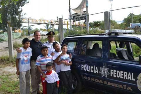 Los padres de familia agradecieron el apoyo del Gobierno Federal y junto a algunos de los alumnos que estuvieron presentes, convivieron con los elementos federales.