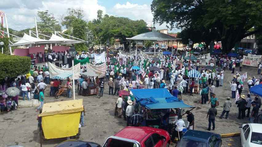 Tuxtepec, Oaxaca.- A 5 años del asesinato de Catarino Torres Pereda, líder de la CODECI, este día integrantes de esa organización realizaron un mitin en la explanada central de la Ciudad de Tuxtepec.
