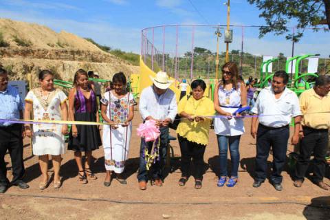 El presidente municipal Tomás Basaldú Gutiérrez, acompañado por su esposa, la Señora Minerva Nicio e integrantes del cabildo, encabezó la tarde de ayer, la inauguración de sanitarios, más de 300 metros de cajón pluvial en inmediaciones del espacio deportivo, así como la instalación de un gimnasio al aire libre.