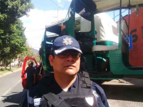 Oaxaca.- Elementos de la policía vía realizan un operativo en la zona de Plaza Bella, para retirar de circulación a moto taxis y taxis que circulen de manera irregular.