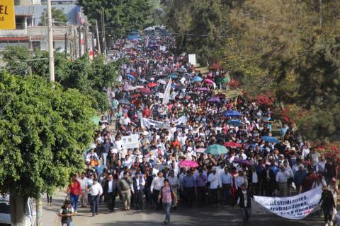 La marcha, en la que participaron representantes de todos los sindicatos universitarios, estuvo encabezada por Eduardo Martínez Helmes, Rector de la Máxima Casa de Estudios en el Estado, quien sostuvo que la exigencia de un aumento de 50% al presupuesto anual no tiene otra finalidad más que la de elevar la calidad en la atención y los servicios educativos de los más de 24 mil estudiantes que componen la matrícula de la UABJO.