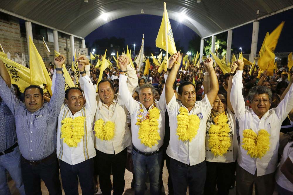 Con el estruendo de fuegos pirotécnicos y música de banda, más de 2 mil personas se congregaron en la cancha municipal en donde vitoreaban al candidato oaxaqueño que estuvo acompañado del diputado federal y presidente de la mesa directiva de la cámara de diputados federal, Jesús Zambrano Grijalva.