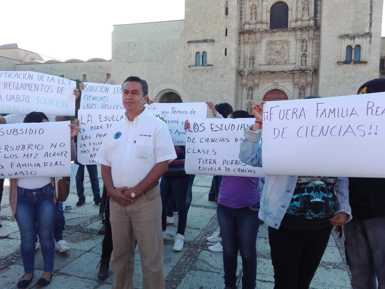 Oaxaca.- El director de la Escuela de Ciencias de la Universidad Autónoma “Benito Juárez” de (UABJO), Raúl Contreras Medina, exigió a las autoridades universitarias poner orden en la institución, toda vez que un grupo minoritario encabezado por la bióloga, Keyla Eugenio Cruz, secuestro la escuela y la mantiene en su poder.