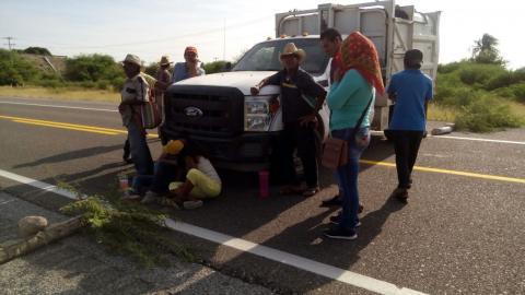 Tehuantepec, Oaxaca. Pobladores y trabajadores del municipio de Santa María Mixtequilla, bloquean la carretera federal 185 tramo Ixtepec-Salina Cruz a la altura del entronque de su comunidad.