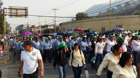 Los agremiados al Sindicato de Trabajadores de los Poderes del Estado e Instituciones Descentralizadas de Carácter Estatal de Oaxaca (STEPEIDCEO), marcharon para conmemorar el Día del Trabajo, encabezados por su polémico dirigente, Noé Cruz Pinacho, a quien a veces lo han acusado de traidor.