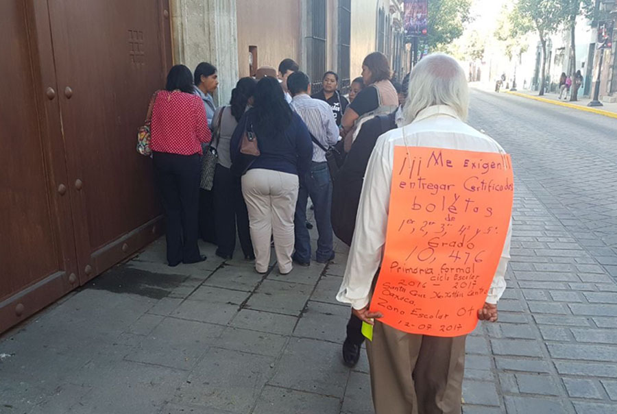 Los padres pertenecen a la zona escolar 04 de Santa Cruz Xoxocotlán, quienes señalan que el Instituto Estatal de Educación Pública de Oaxaca (IEEPO), se ha negado a entregar boletas y certificados a los profesores de la zona y les afecta para las inscripciones de sus menores.