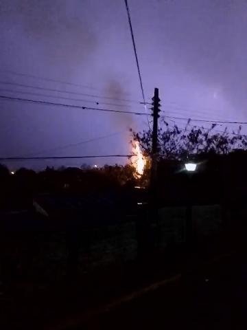 En el municipio conurbado de Santa María Atzompa, un rayo cayó sobre una enorme palmera, partiéndola en dos y provocando que se incendiara.