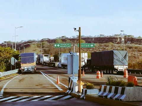 Esta acción genera que cientos de tracto camiones cargados estén varados en la carretera, principalmente en las casetas de peaje.