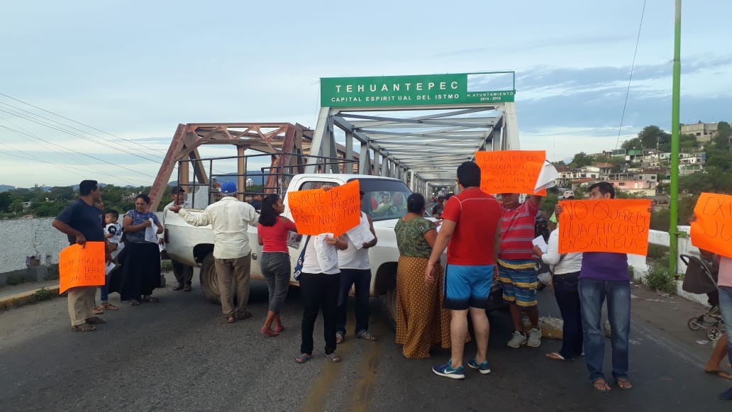 de la comunidad de San Blas Atempa activen un bloqueo en el Puente de Fierro, en el Istmo de Tehuantepec.