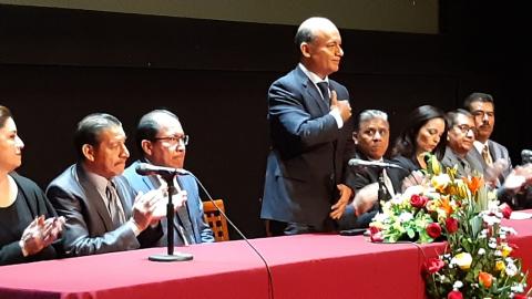 Teniendo como sede el majestuoso teatro Macedonio Alcalá, Mayrén Carrasco entregó medallas de plata y oro a trabajadores con 20, 25 y 29 años de servicio en dicha dependencia del estado.