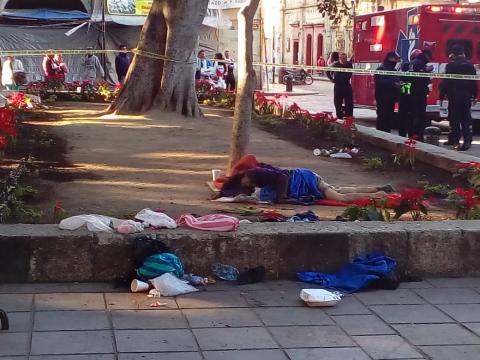 Oaxaca.- En pleno corazón de Oaxaca Capital, una indigente muere por hipotermia.