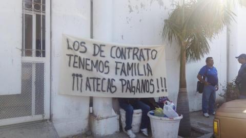 En la manifestación, los sindicalizados indicaron que son más de treinta compañeros de contrato que no han recibido el pago de su quincena.