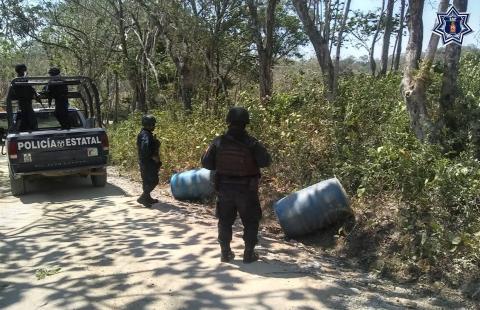 Los destacamentos de la Policía Estatal informaron que el aseguramiento se realizó tras atender una solicitud de apoyo del personal de seguridad física de Petróleos Mexicanos (PEMEX), quienes ubicaron dos tambos con capacidad de 200 litros cada uno, que se encontraban abastecidos de hidrocarburo en un 90% de su totalidad en el camino de terracería que conduce a la agencia municipal de Ejido Nuevo Progreso de este municipio de la región del Istmo.