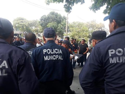 Los policías se plantaron en la comandancia exigiendo su homologación ante la Secretaría de Seguridad Pública en el Estado, seguro médico, medicamentos, ayuda para gastos de sepelio y seguro de vida para los uniformados.