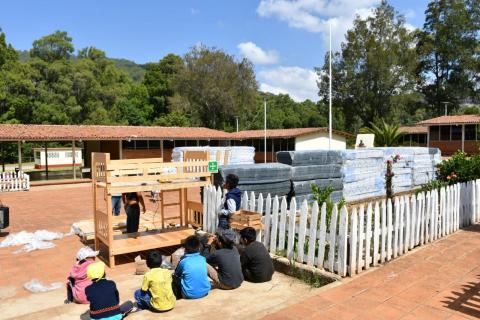 Santiago Yosondúa, Oax.- Por gestiones inmediatas de la presidenta honoraria del Sistema para el Desarrollo Integral de la Familia (DIF), Ivette Morán de Murat, personal de este organismo asistencial y del Instituto Estatal de Educación Pública de Oaxaca (IEEPO), que dirige Francisco Ángel Villarreal, entregó material y mobiliario al Centro de Integración Social (CIS) número 20 de este municipio, plantel que resultó afectado por un incendio.