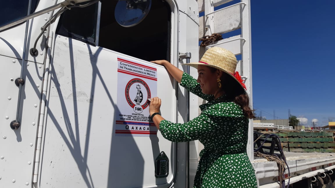 Oaxaca. La secretaria se Acción política de la Confederación Libertad de Trabajadores de México, Guadalupe Díaz Pantoja realizó la pega de calcas a 75 transportistas del acarreo de CEMEX , lo que garantiza el incremento de afiliados a dicho sindicato.
