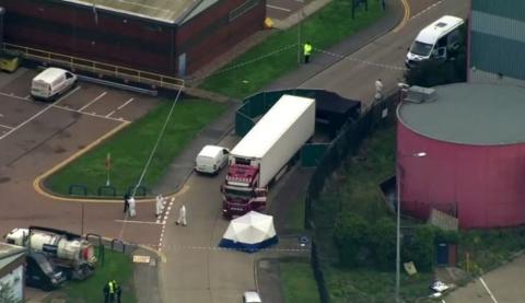La Policía británica halló este miércoles los cadáveres de 39 personas que se encontraban en el contenedor de un camión en una zona industrial del condado inglés de Essex y detuvo al conductor del vehículo como sospechoso de asesinato.