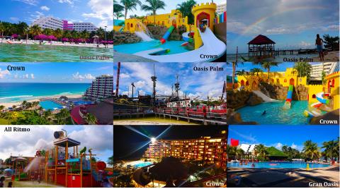 Catalogado entre 3 ½ y 4 estrellas se encuentra el Grand Oasis Palm Resort con un precio estimado de 2,750 pesos la noche para dos adultos y dos niños en régimen todo incluido (habitación estándar sin impuestos incluidos).