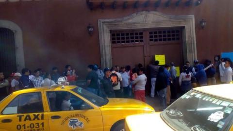 Los manifestantes arribaron alrededor de las 12:30 horas de hoy, al citado inmueble ubicado sobre avenida Juárez El Llano, en el Centro Histórico de la Ciudad de Oaxaca.