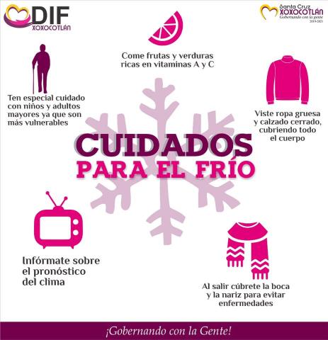 Santa Cruz Xoxocotlán, Oaxaca.- El Sistema DIF Xoxocotlán en coordinación con la Dirección de Salud Municipal emitieron recomendaciones para evitar enfermedades respiratorias y riesgos en la salud de familias xoxeñas durante la temporada de frío.