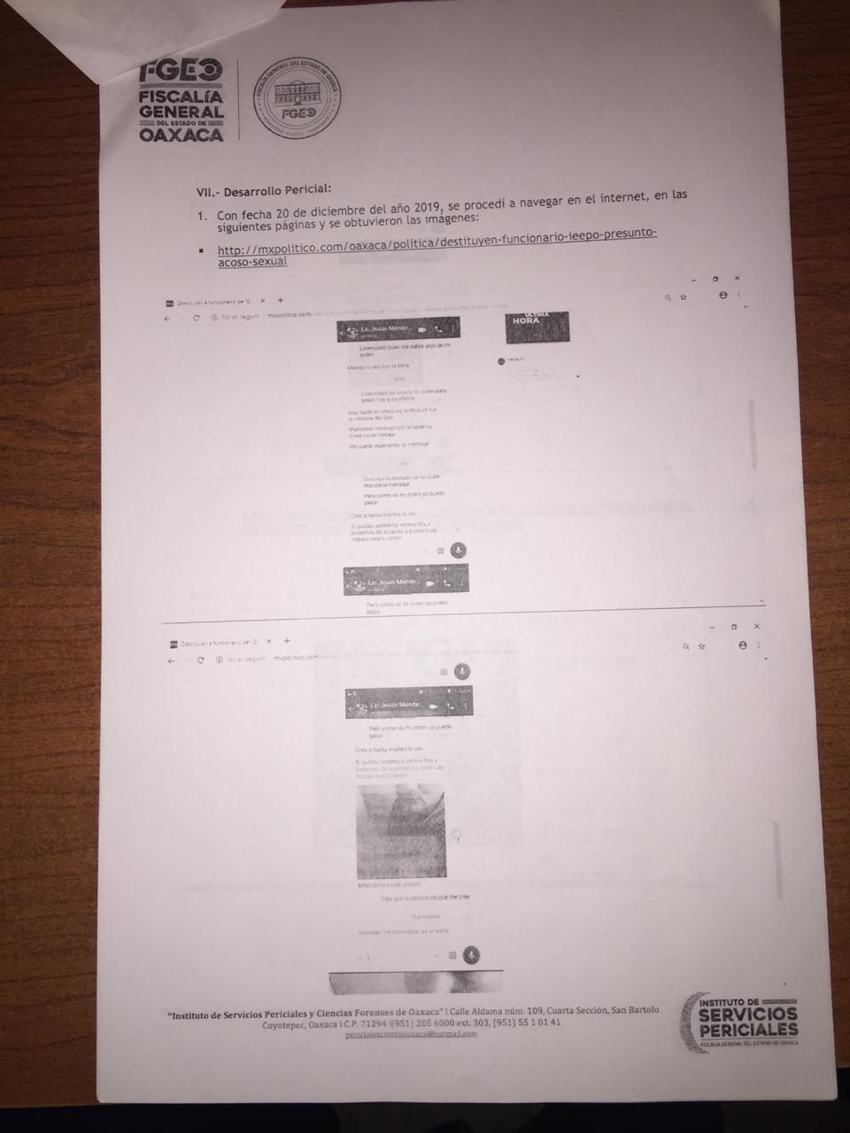 Los servicios periciales de la Fiscalía de Oaxaca indican que no hay correspondencia de las imágenes circuladas de manera anónima en redes sociales, con el contenido que emitió el día del supuesto acoso.