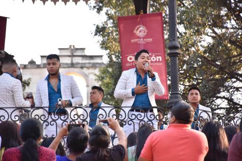 Oaxaca de Juárez, Oax.- Con la encomienda de seguir alentando la convivencia comunitaria en los espacios públicos de la ciudad con actividades culturales, el Ayuntamiento de Oaxaca de Juárez, a través de la Coordinación Ejecutiva del Centro Histórico, organizó el concierto de la banda Tierra Mojada, que se presentó en el kiosco del Zócalo capitalino.