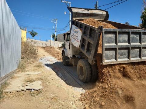 Santa Cruz Xoxocotlán, Oaxaca. Dando cumplimiento al compromiso de velar por el bienestar de las familias de Santa Cruz Xoxocotlán, el gobierno municipal continúa con el programa de revestimiento y rastreo de calles en colonias populares de este municipio.