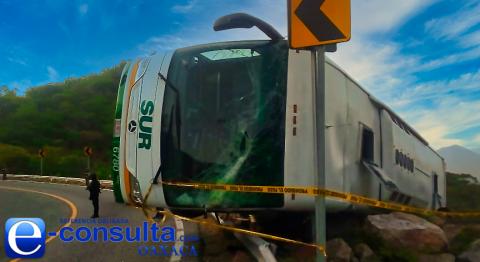 Un muerto y varios heridos por volcadura de camión SUR en Oaxaca