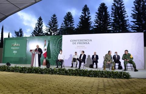 La mañanera se realiza en la zona militar de Oaxaca. Y más tarde se trasladará hacia la región del Istmo de Tehuantepec, en donde supervisará los avances del corredor interoceánico en Salina Cruz, además estará en Santo Domingo Tehuantepec.
