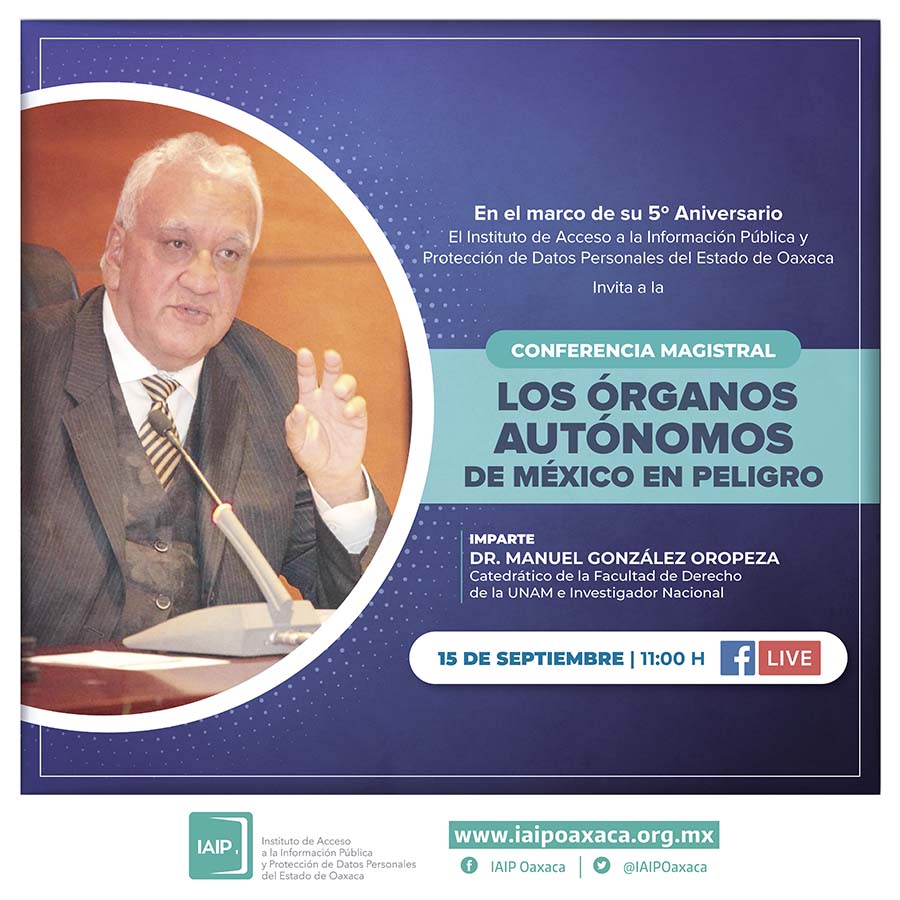 Oaxaca. En el marco de su 5º Aniversario, el Instituto de Acceso a la Información Pública y Protección de Datos Personales del Estado de Oaxaca (IAIPO) ha organizado tres eventos virtuales.