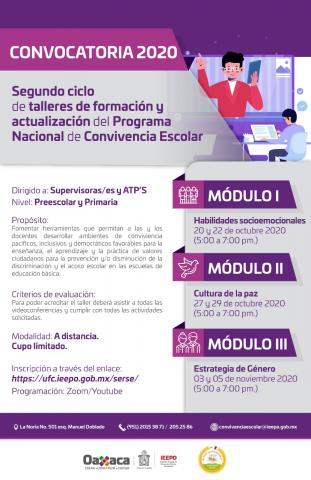 Abre IEEPO segunda convocatoria para ciclo de talleres sobre Convivencia Escolar