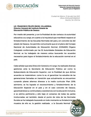 4.- Hace más de tres semanas la autoridad educativa RESPONDIÓ al pliego de peticiones que presentaron los representantes estudiantiles reconocidos. El IEEPO lo hizo público y se puede consultar en línea en la siguiente liga: https://www.oaxaca.gob.mx/ieepo/respuesta-a-normalistas/