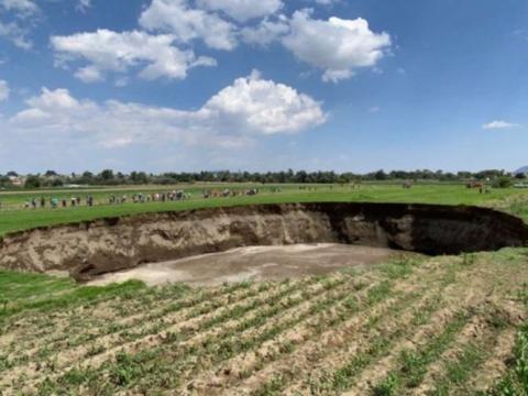 Se forma enorme socavón en terrenos de cultivo en Puebla