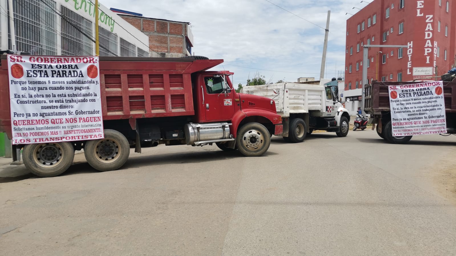 Con esta acción, exigen al gobierno de Alejandro Murat y en especial a él, pague los adeudos por una obra pública que se ejecuta en inmediaciones de la Central de Abasto.