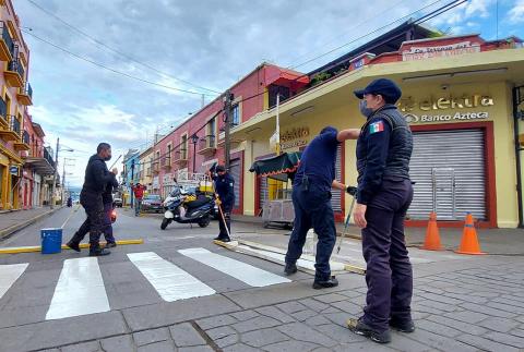 Rehabilita Ayuntamiento capitalino pintura de pasos peatonales y señalamientos restrictivos