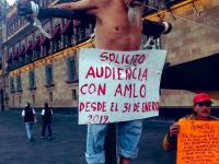 Se “crucifica” oaxaqueño frente al Palacio Nacional Lunes, Abril 1, 2019 - 10:57Pide audiencia con AMLO.Leer más