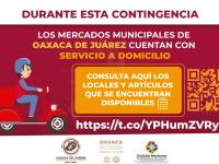 Mercados de Oaxaca de Juárez ofrecen servicio a domicilio durante la contingencia Lunes, Abril 6, 2020 - 07:19173 locatarias y locatarios contribuirán a que la población consumidora se quede en casa ante el COVID-19.Leer más