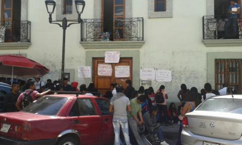 Oaxaca.- Un grupo de 60 alumnos de la Escuela Norma Bilingüe Intercultural de San Jerónimo Tlacochahuaya, tomaron las oficinas centrales de la sección 22 de la Coordinadora Nacional de Trabajadores de la Educación (CNTE), que se localizan en el Centro Histórico de la Ciudad de Oaxaca, para exigir cumplimiento a los acuerdos, donde los dirigente de dicho gremio se comprometieron a ofrecer nuevas plantillas de profesores, así como también se destinen recursos para mejorar la infraestructura de su plantel.