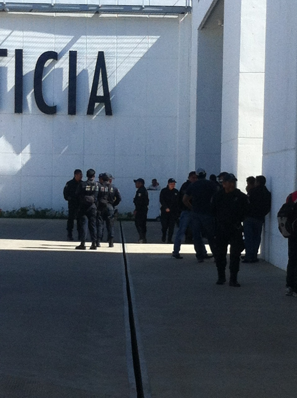 Los uniformados exigen la presencia del oficial mayor de la secretaría, esto para que haga entrega de los uniformes que desde ayer debió entregar.
