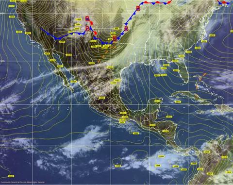 Pacífico Norte: Se espera cielo medio nublado, temperaturas frescas por la mañana y noche, calurosas durante la tarde y viento del norte y noroeste de 20 a 35 km/h.